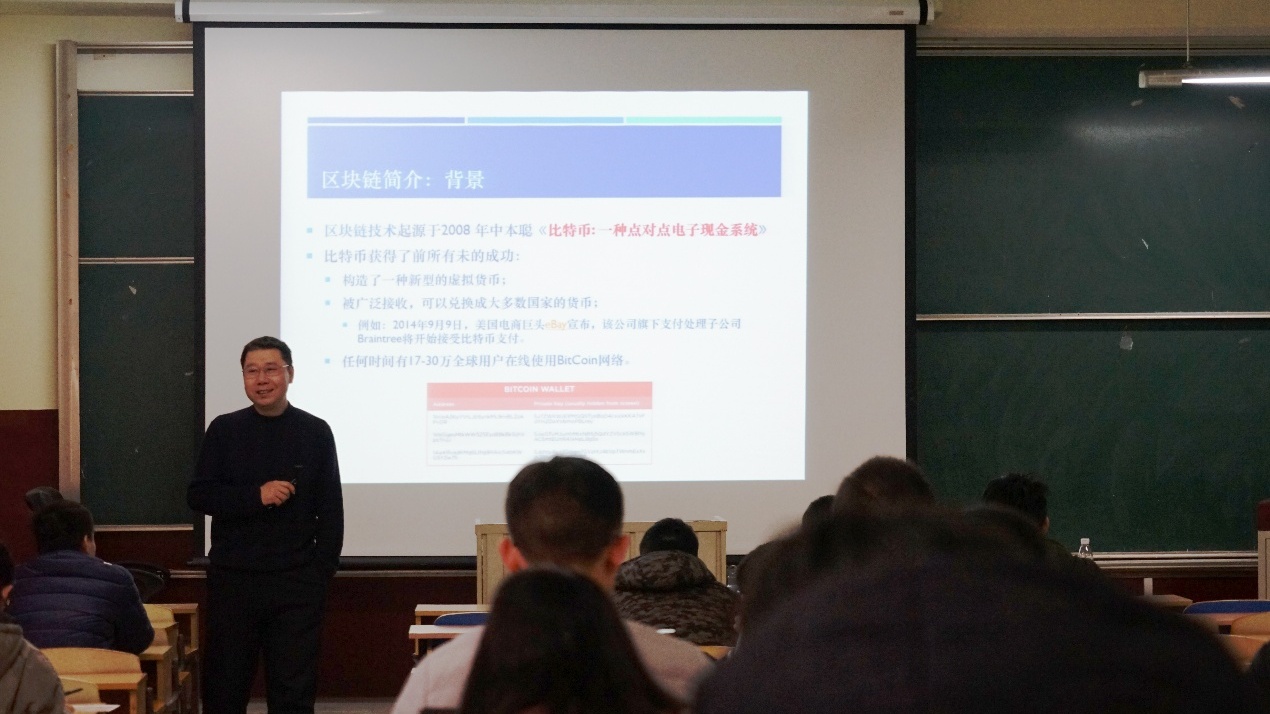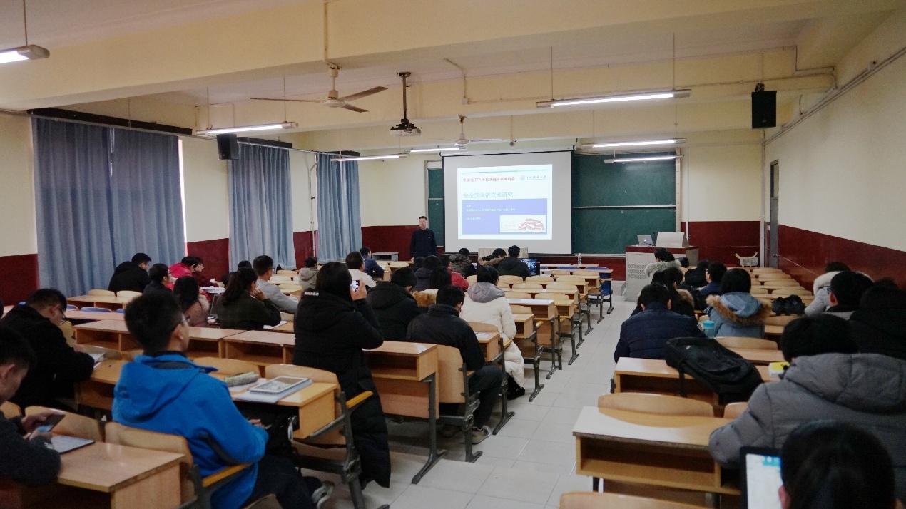 12月14日下午,“青杏计划”研究生(管庄)系列学术讲座第九期在管庄教学楼401教室如期举行。本次讲座邀请了中国电子学会区块链专家委员会副主任朱岩教授作题为《数字经济时代的区块链及其安全技术》的学术报告,为大家介绍了区块链技术的相关知识和发展前景。