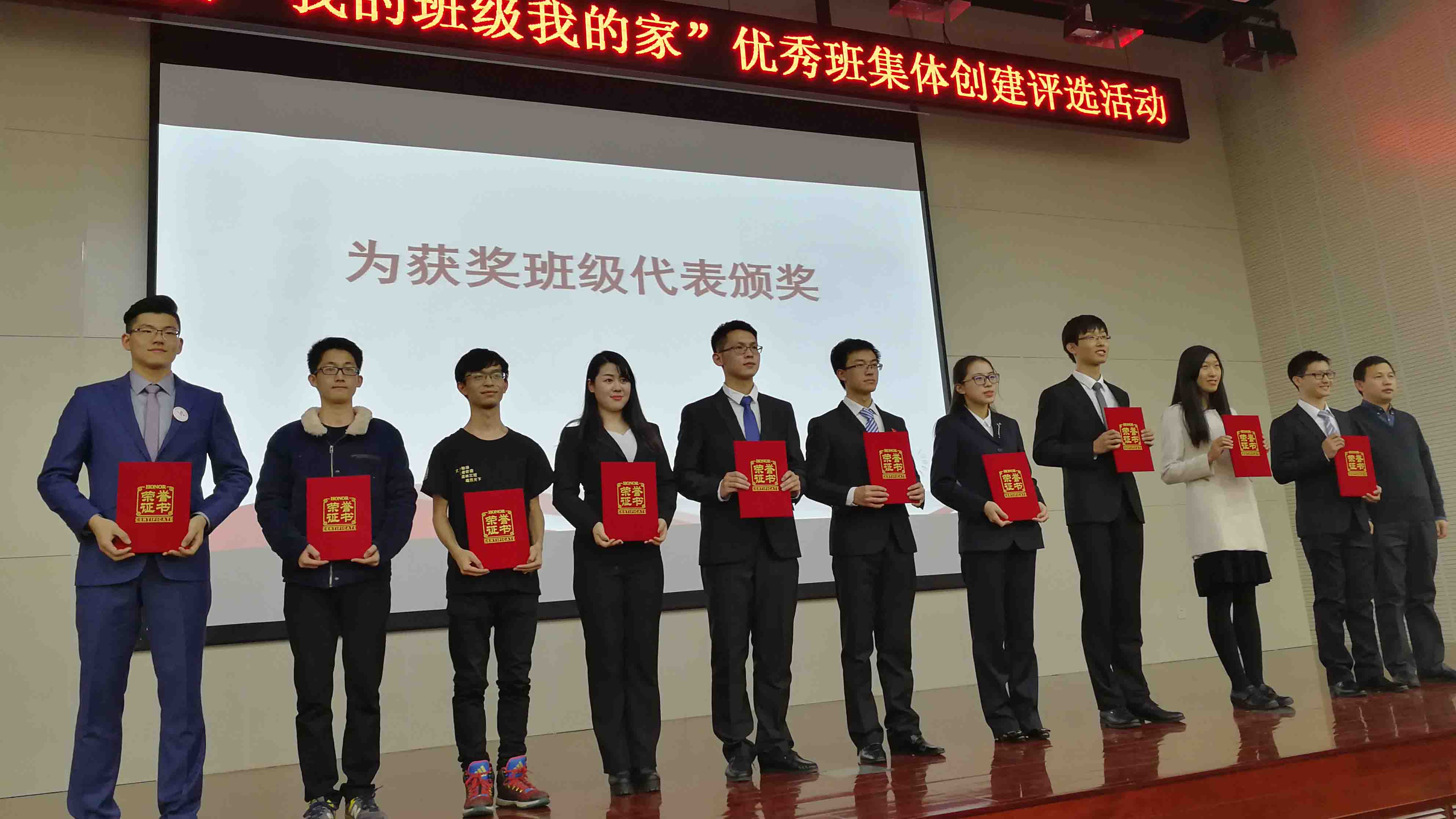 推荐、网络展示、专家评审和现场答辩四个阶段。经过层层筛选,物联1301班进入市级“十佳”示范班集体称号答辩评选环节。
