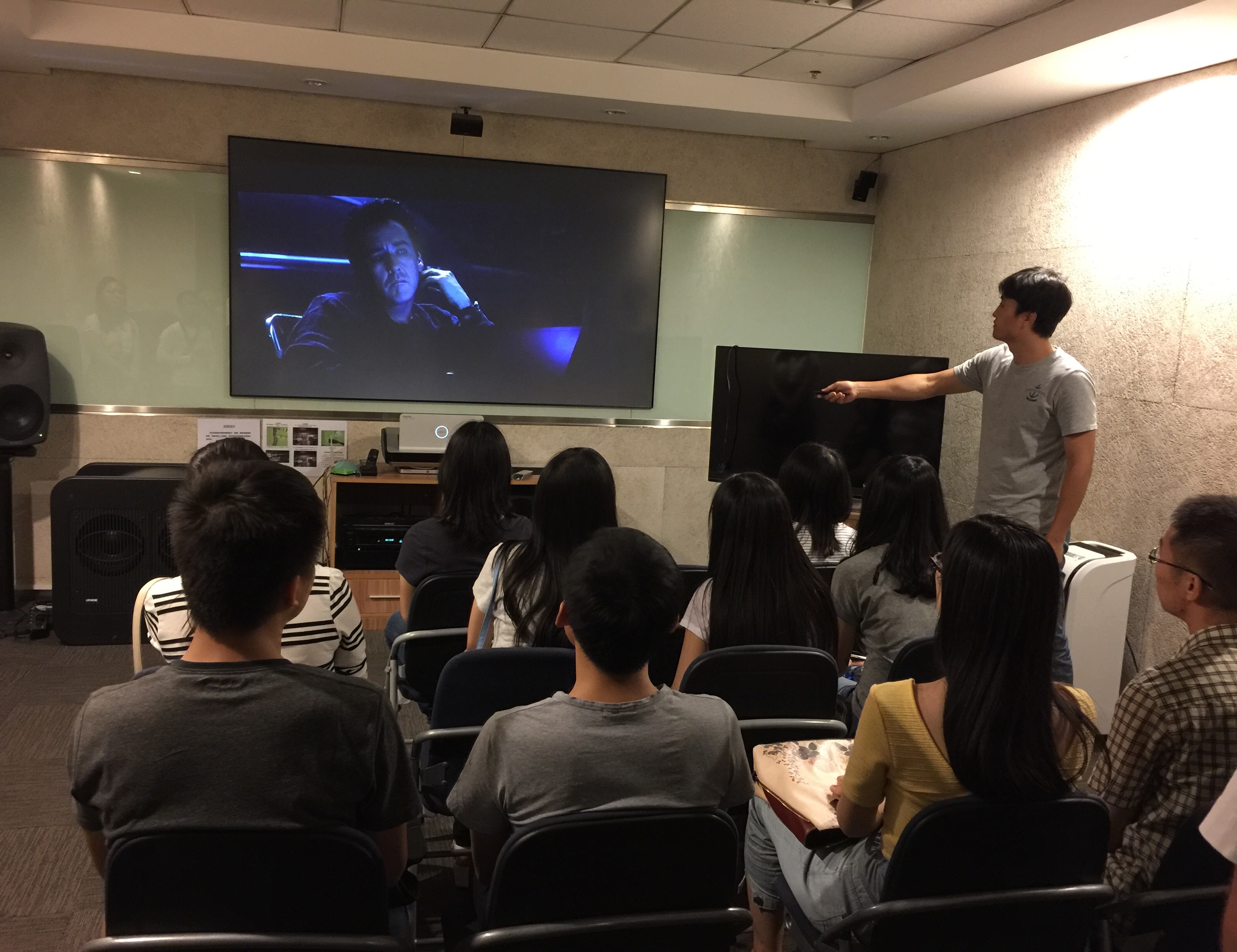 师生参观了爱奇艺的杜比联合实验室和演播室,实验室相关负责人讲解了杜比音效及节目录制等相关专业知识。
