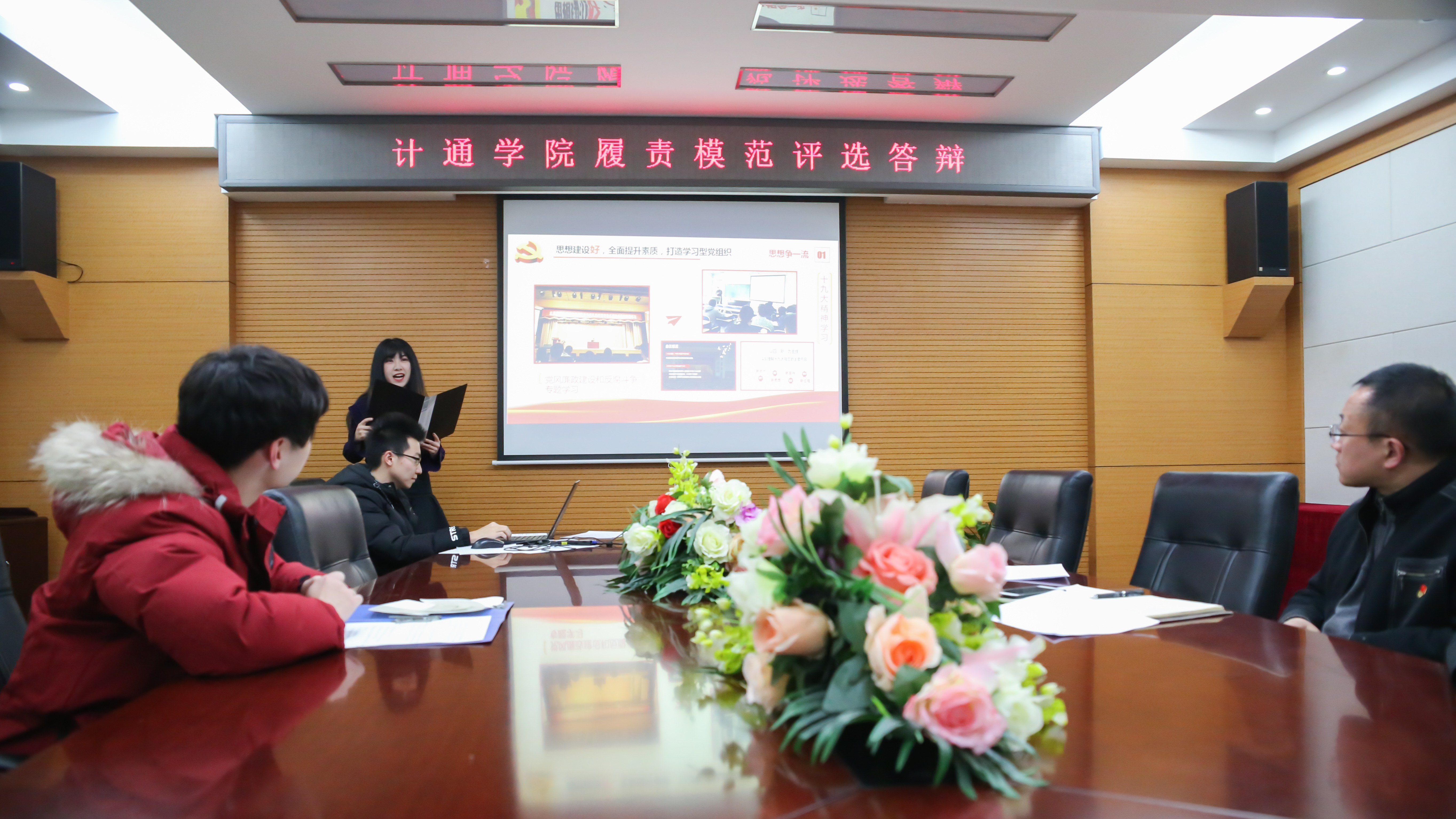 2018年1月5日晚, 2017年度色漫天堂 “履责模范”评选答辩在机电楼601举行,色漫天堂 党委副书记杨健以及各年级辅导员出席本次答辩会,会议由团委副书记、本15级兼硕16级辅导员李毅萍主持。