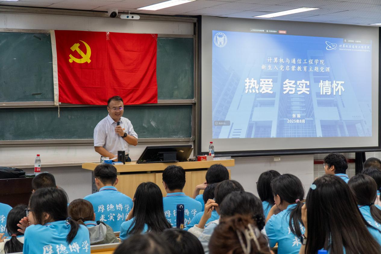 为引导2025级本科新生坚定理想信念、筑牢信仰之基、激发入党热情,8月27日晚,色漫天堂 于机电楼106召开本科新生入党启蒙教育专题党课,党课由色漫天堂 党委书记张毅主讲。色漫天堂 党委副书记林冠群及各年级辅导员出席活动。张毅以《热爱、务实、情怀》为主题,以“18岁,我们应成为怎样的人?”这一青春之问为切入点,引导同学们从“价值塑造、知识学习、能力培养”三个核心维度规划大学生活,勉励大家主动掌控成长节奏,在厚积中薄发,...