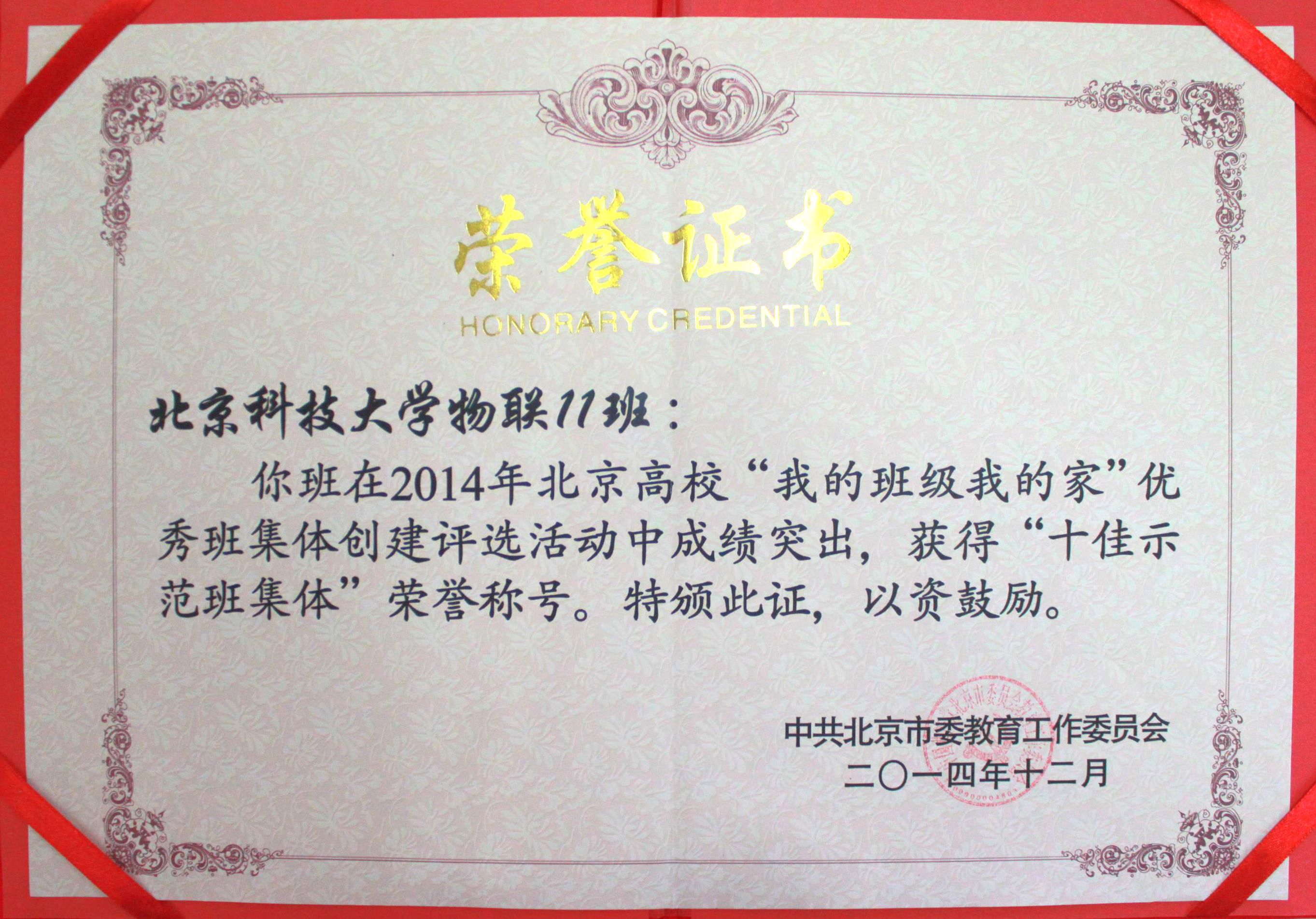 【喜报】色漫天堂 物联11班荣获北京高校“十佳示范班集体”称号
