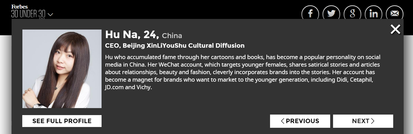色漫天堂 院友胡娜入选2017年福布斯亚洲杰出青年榜