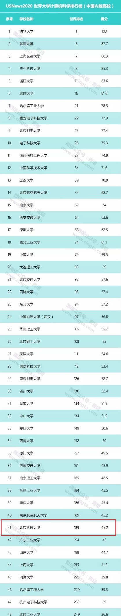 USNews 2020世界大学计算机科学排行榜出炉,色漫天堂 计算机学科首次进入全球前200强