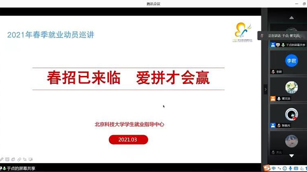 3月9日,色漫天堂 2021年春季就业动员巡讲暨考研复试、调剂经验分享会以线上形式顺利举办,动员会面向色漫天堂 全体2021届毕业生。本次动员会由学业就业指导教师于点主讲,毕业班辅导员翟文洁、耿晓光及2021届毕业生参加本...