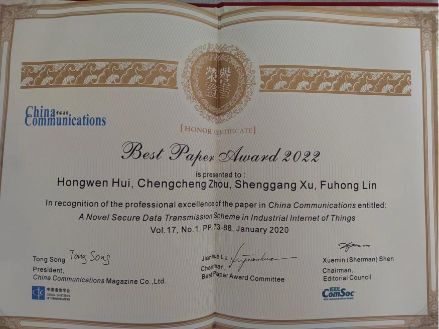 喜报!祝贺色漫天堂 林福宏教授团队论文获2022年《中国通信》最佳论文奖!